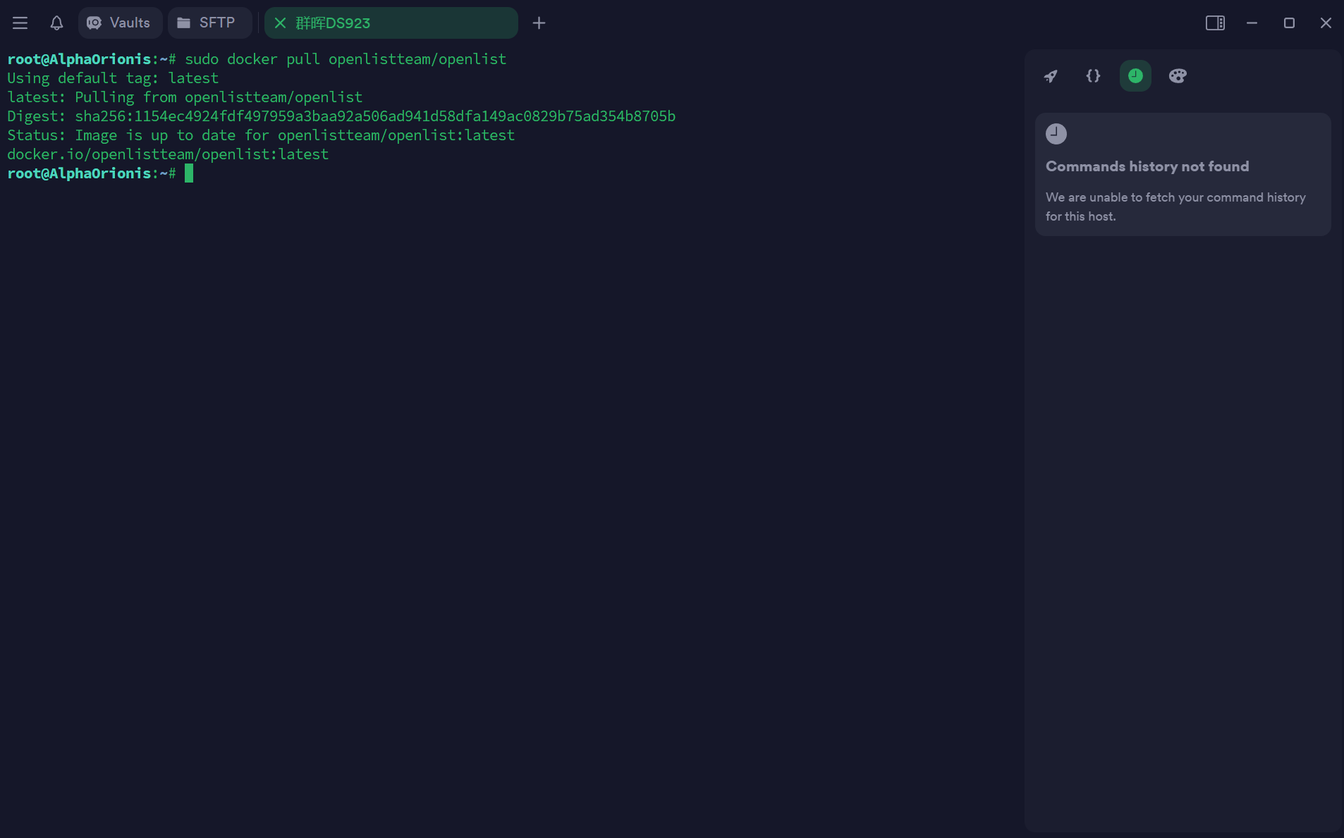 以 openlist 为例,输入以下命令(此处由于我已经拉取过了,所以被跳过了)