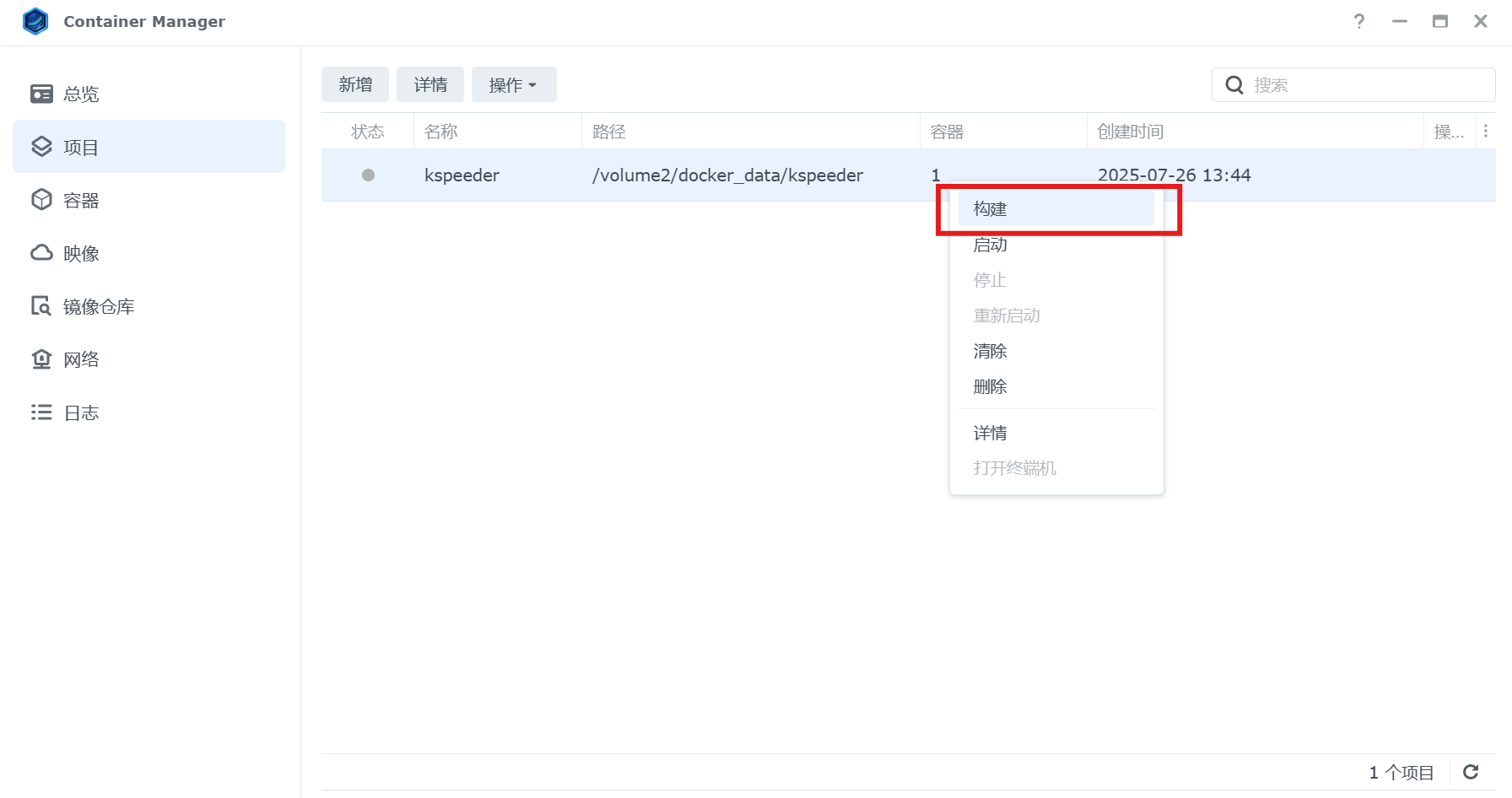 打开 ContainerManager ,在左侧菜单选择【项目】,再点击【新建】